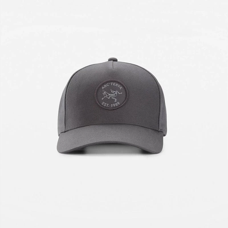 Retro-styled ball cap with five-panel construction and an Arc’teryx patch.